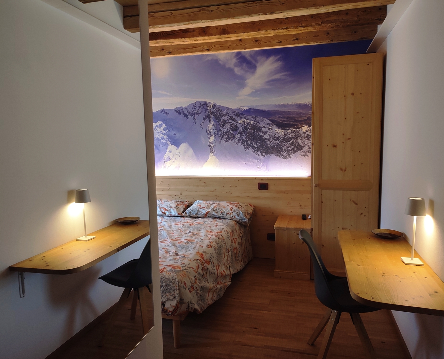 La camera Dolada, dotata di un letto "alla francese" di 150 cm di larghezza, è in grado di ospitare al fino a due persone in quanto il suo utilizzo può essere alternativamente singolo o matrimoniale.