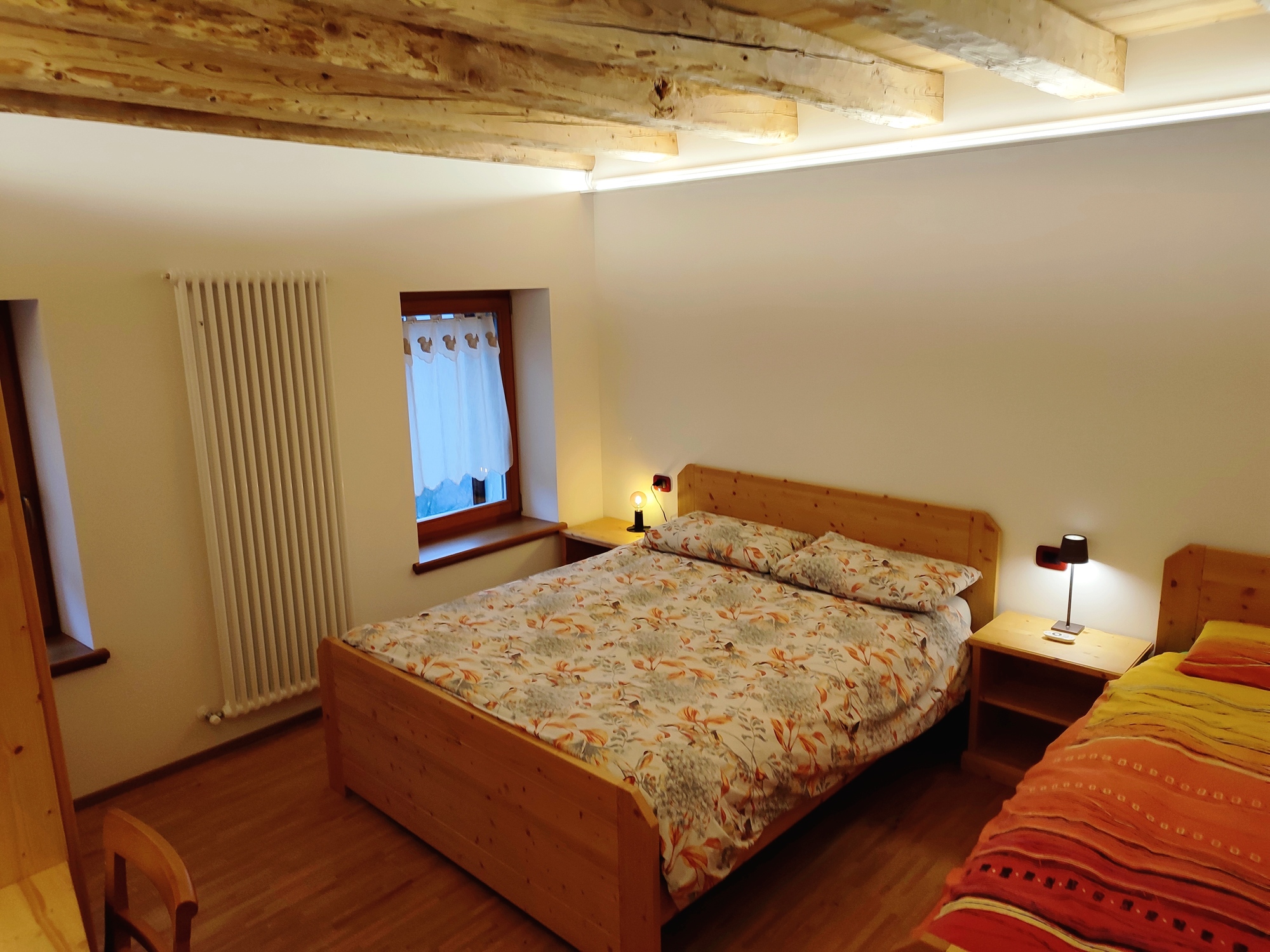 La camera Visentin, la più grande, è composta da un letto matrimoniale e un confortevole singolo (100 cm. di larghezza) e ha la possibilità di ospitare comodamente fino a tre persone.